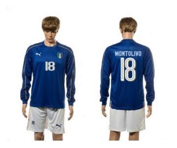 Italy #18 Montolivo Blue Home Long Sleeves Soccer Country Jersey1