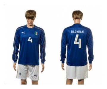 Italy #4 Darmain Blue Home Long Sleeves Soccer Country Jersey1