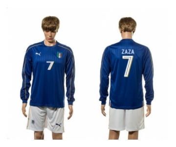 Italy #7 Zaza Blue Home Long Sleeves Soccer Country Jersey1