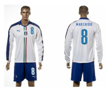 Italy #8 Marchisio White Away Long Sleeves Soccer Country Jersey