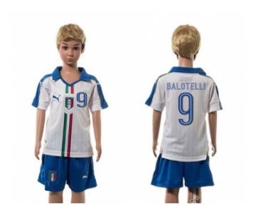 Italy #9 Balotelli White Away Kid Soccer Country Jersey