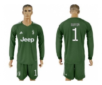 Juventus #1 Buffon Green Goalkeeper Long Sleeves Soccer Club Jersey