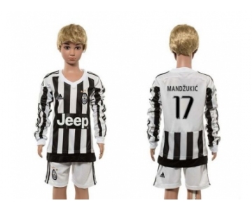 Juventus #17 Mandzukic Home Long Sleeves Kid Soccer Club Jersey