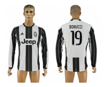 Juventus #19 Bonucci Home Long Sleeves Soccer Club Jersey 2