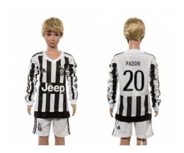 Juventus #20 Padoin Home Long Sleeves Kid Soccer Club Jersey