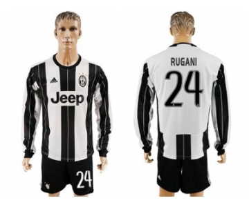 Juventus #24 Rugani Home Long Sleeves Soccer Club Jersey 1