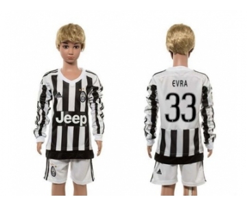 Juventus #33 Evra Home Long Sleeves Kid Soccer Club Jersey