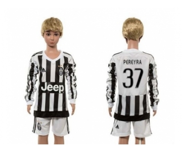 Juventus #37 Pereyra Home Long Sleeves Kid Soccer Club Jersey