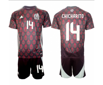 Kid Mexico #14 Chicharito Green 2024 Home Soccer Jersey