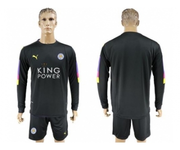 Leicester City Blank Black Goalkeeper Long Sleeves Soccer Club Jersey