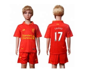 Liverpool #17 Sakho Red Home Kid Soccer Club Jersey