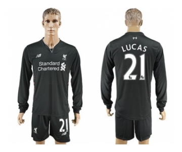 Liverpool #21 Lucas Away Long Sleeves Soccer Club Jersey1