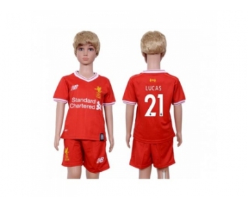 Liverpool #21 Lucas Red Home Kid Soccer Club Jersey