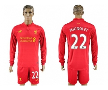 Liverpool #22 Mignolet Home Long Sleeves Soccer Club Jersey1