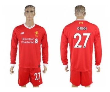 Liverpool #27 Origi Home Long Sleeves Soccer Club Jersey