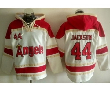 Los Angeles Angels Of Anaheim #44 Reggie Jackson White Sawyer Hooded Sweatshirt Baseball Hoodie
