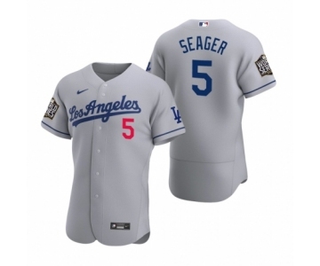 Los Angeles Dodgers #5 Corey Seager Nike Gray 2020 World Series Authentic Road Jersey