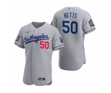 Men's Los Angeles Dodgers #50 Mookie Betts Nike Gray 2020 World Series Authentic Jersey