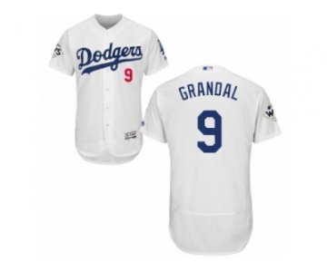 Los Angeles Dodgers #9 Yasmani Grandal Authentic White Home 2017 World Series Bound Flex Base MLB Jersey