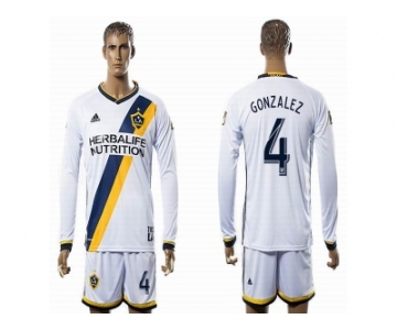 Los Angeles Galaxy #4 GONZALEZ White Home Long Sleeves Soccer Club Jersey