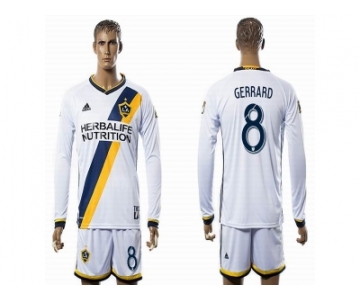 Los Angeles Galaxy #8 GERRARD White Home Long Sleeves Soccer Club Jersey