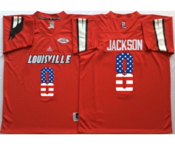 Louisville Cardinals #8 Lamar Jackson Red USA Flag College Jersey
