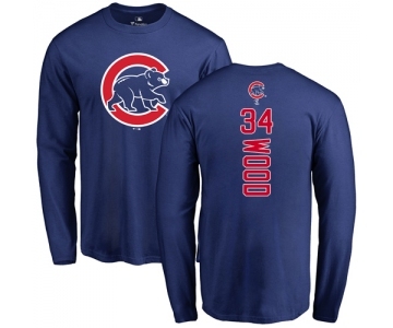 MLB Nike Chicago Cubs #34 Kerry Wood Royal Blue Backer Long Sleeve T-Shirt
