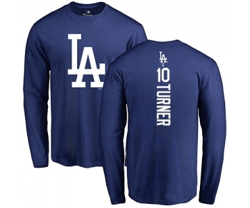 MLB Nike Los Angeles Dodgers #10 Justin Turner Royal Blue Backer Long Sleeve T-Shirt