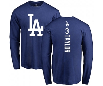 MLB Nike Los Angeles Dodgers #3 Chris Taylor Royal Blue Backer Long Sleeve T-Shirt