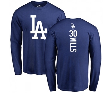 MLB Nike Los Angeles Dodgers #30 Maury Wills Royal Blue Backer Long Sleeve T-Shirt