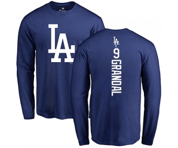 MLB Nike Los Angeles Dodgers #9 Yasmani Grandal Royal Blue Backer Long Sleeve T-Shirt