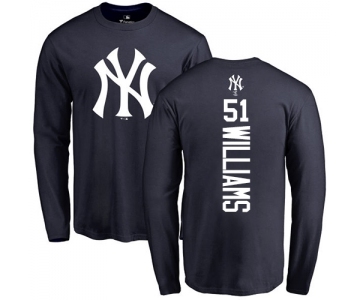 MLB Nike New York Yankees #51 Bernie Williams Navy Blue Backer Long Sleeve T-Shirt