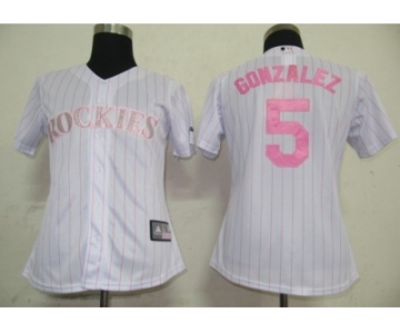 MLB Women Jerseys Colorado Rockies #5 Gonzalez White[Pink strip]