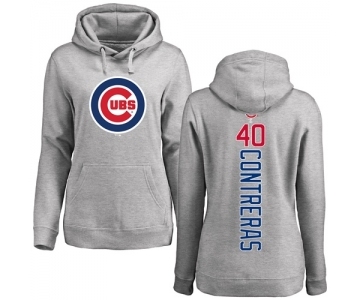 MLB Women's Nike Chicago Cubs #40 Willson Contreras Ash Backer Pullover Hoodie