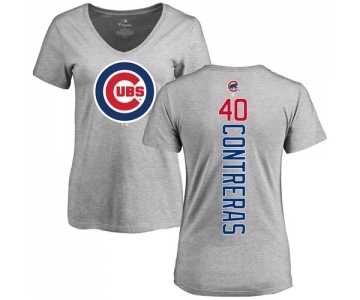MLB Women's Nike Chicago Cubs #40 Willson Contreras Ash Backer T-Shirt