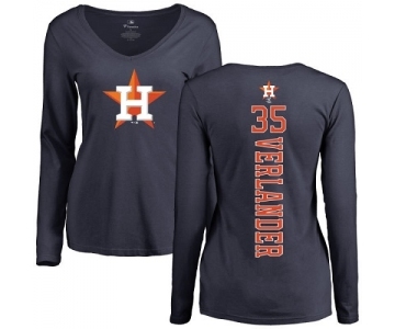 MLB Women's Nike Houston Astros #35 Justin Verlander Navy Blue Backer Long Sleeve T-Shirt