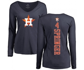 MLB Women's Nike Houston Astros #4 George Springer Navy Blue Backer Long Sleeve T-Shirt