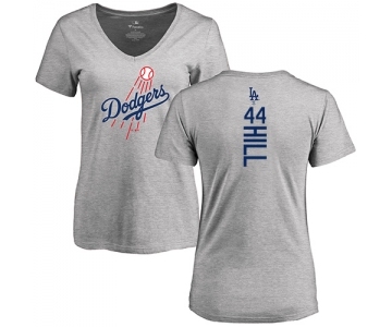 MLB Women's Nike Los Angeles Dodgers #44 Rich Hill Ash Backer T-Shirt