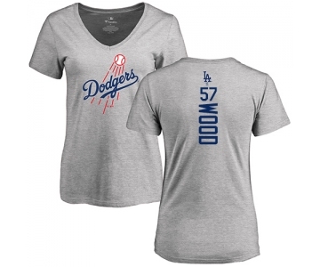 MLB Women's Nike Los Angeles Dodgers #57 Alex Wood Ash Backer T-Shirt