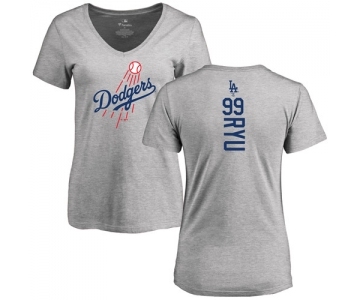 MLB Women's Nike Los Angeles Dodgers #99 Hyun-Jin Ryu Ash Backer T-Shirt