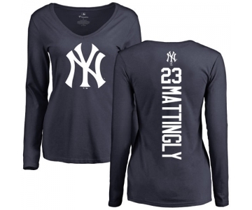 MLB Women's Nike New York Yankees #23 Don Mattingly Navy Blue Backer Long Sleeve T-Shirt