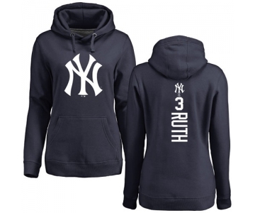 MLB Women's Nike New York Yankees #3 Babe Ruth Navy Blue Backer Pullover Hoodie