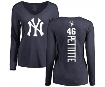 MLB Women's Nike New York Yankees #46 Andy Pettitte Navy Blue Backer Long Sleeve T-Shirt