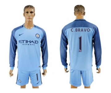 Manchester City #1 C.Bravo Home Long Sleeves Soccer Club Jersey