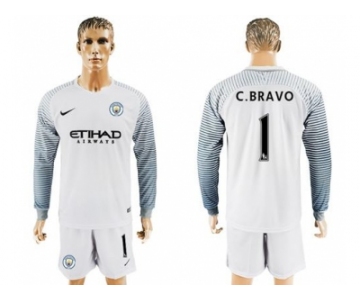 Manchester City #1 C.Bravo White Goalkeeper Long Sleeves Soccer Club Jersey