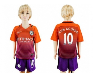 Manchester City #10 Kun Aguero Sec Away Kid Soccer Club Jersey