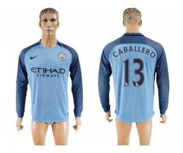 Manchester City #13 Caballero Home Long Sleeves Soccer Club Jersey1