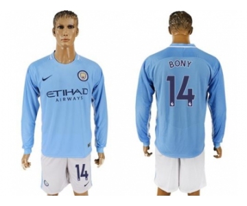 Manchester City #14 Bony Home Long Sleeves Soccer Club Jersey