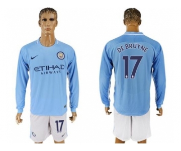 Manchester City #17 De Bruyne Home Long Sleeves Soccer Club Jersey