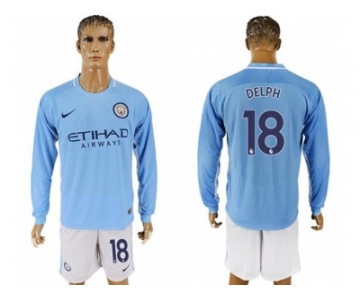 Manchester City #18 Delph Home Long Sleeves Soccer Club Jersey